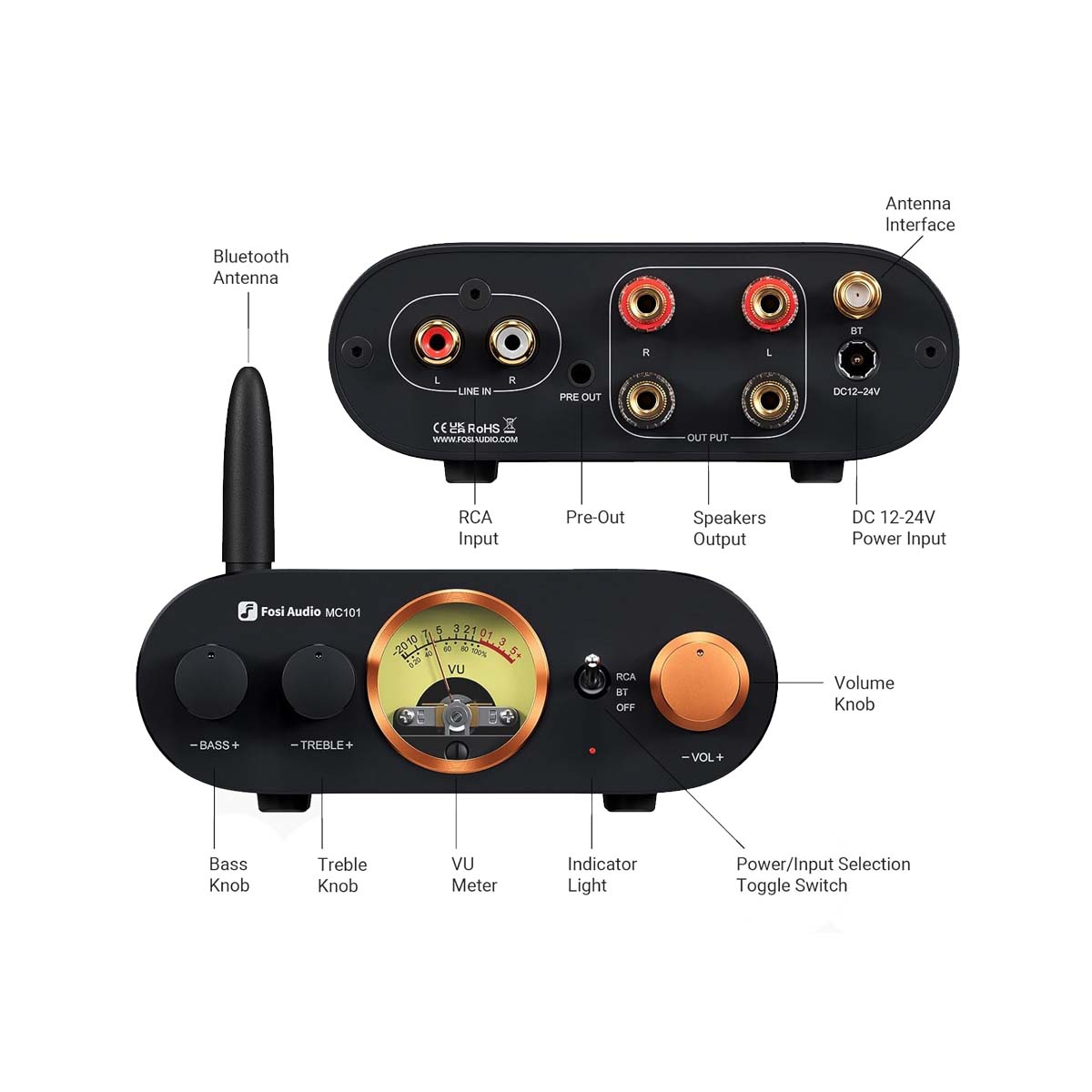 Fosi Audio MC101 Bluetooth Stereo Amplifier With VU Meter