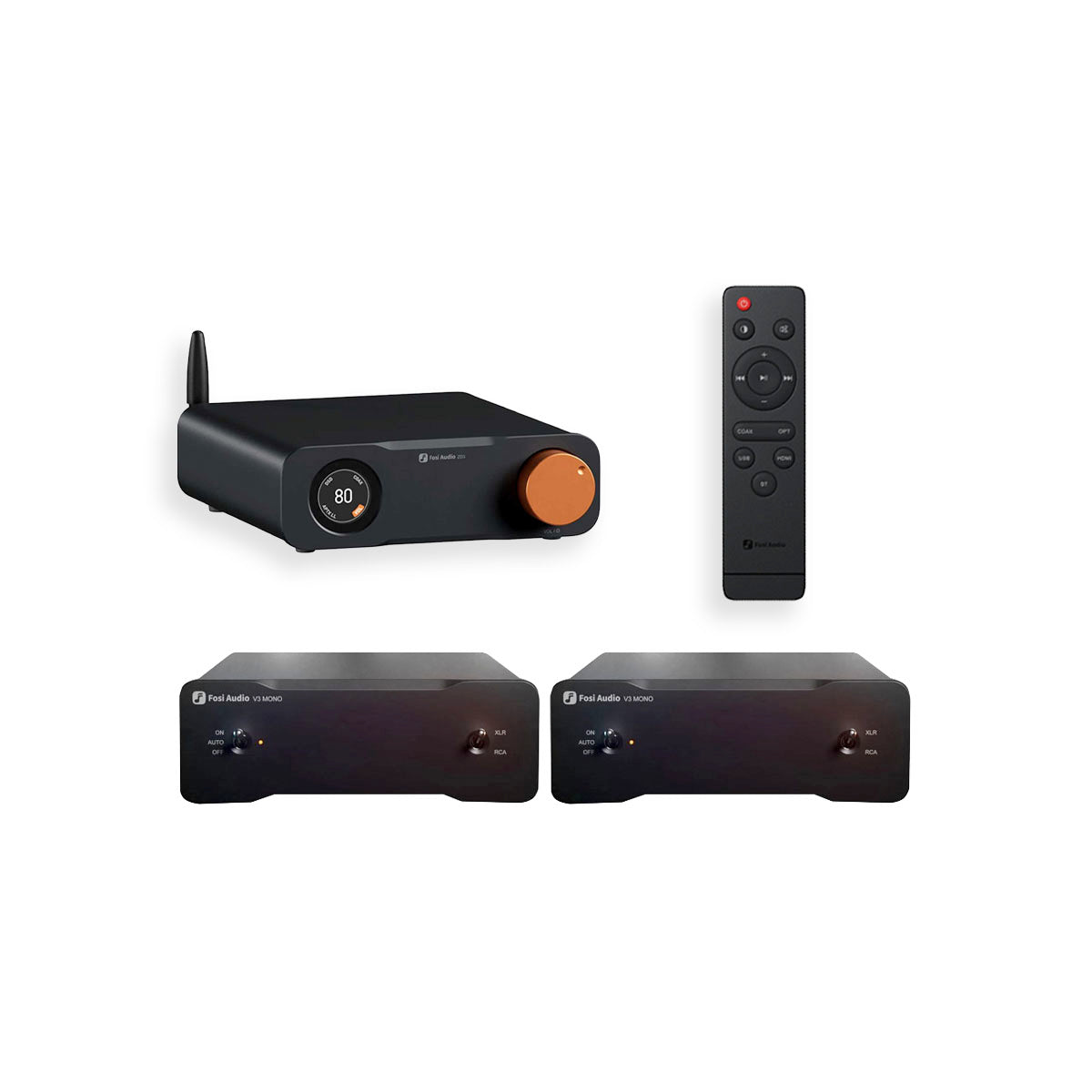 The Fosi Audio ZD3 DAC + V3 Mono Amplifier System pairs precision digital conversion with pure dual-mono Class-D power for a high-performance stereo setup. The Fosi ZD3 DAC & Remote control is the perfect digital hub delivering vivid, transparent sound, while the two V3 Mono monoblocks amps drive speakers with exceptional control and dynamic headroom. Compact yet uncompromising, this fully balanced stereo system with its 240 watts per channel brings the scale and refinement of true hi-fi into any room — effortless sound with elegant simplicity.