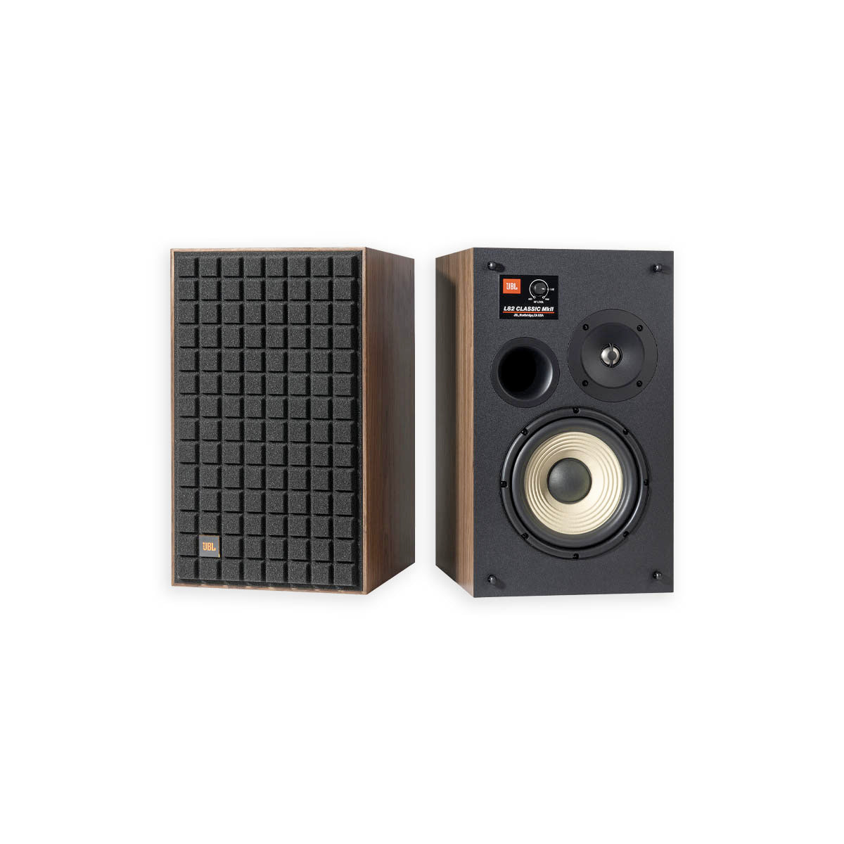 The JBL L82 Classic MkII is an 8-inch retro-styled standmount loudspeaker that blends vintage 1970s aesthetics with upgraded modern acoustic engineering. Featuring a pure pulp woofer, titanium dome tweeter, enhanced crossover network with bi-wire/bi-amp capability, and a walnut veneer cabinet with colourful Quadrex foam grilles.