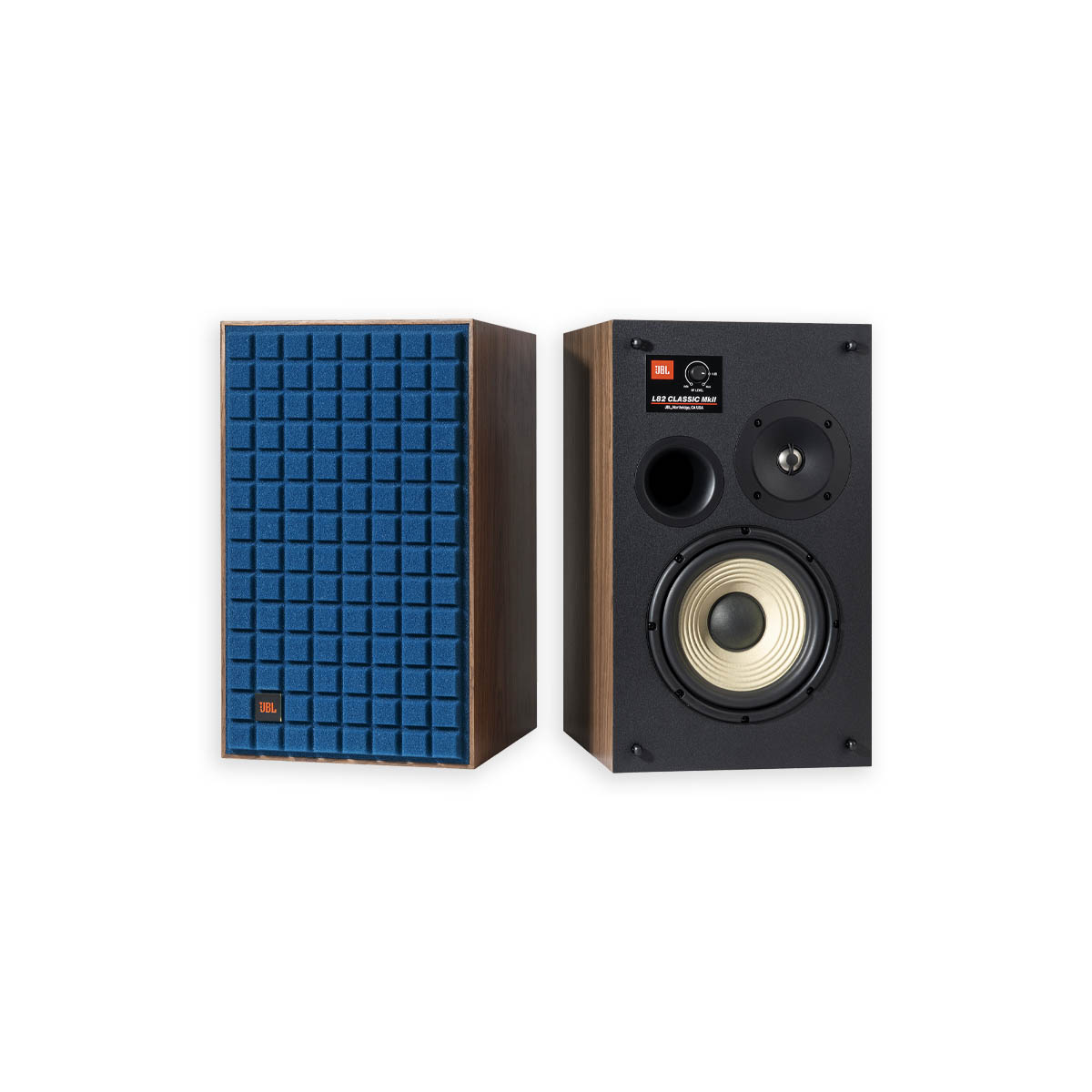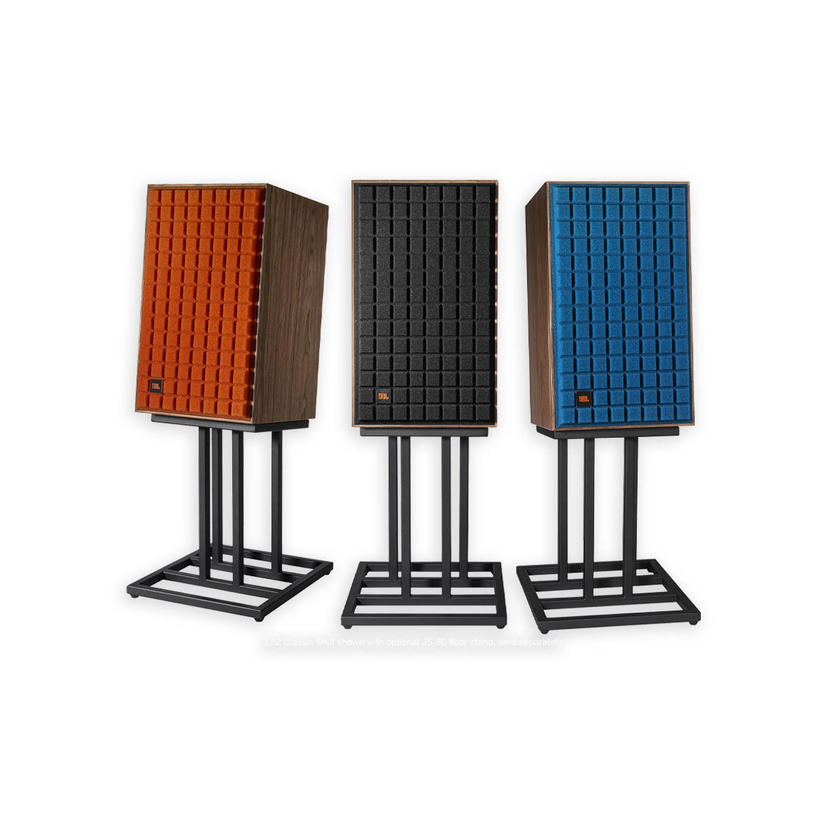 The cabinet of this JBL speaker is finished in natural walnut veneer and paired with Quadrex foam grilles in black, orange, or blue. Sold as a mirror-imaged left and right pair, the L82 Classic MkII creates a balanced, coherent stereo image whether placed on shelves or paired with the optional JS-80 stands for optimal listening height.