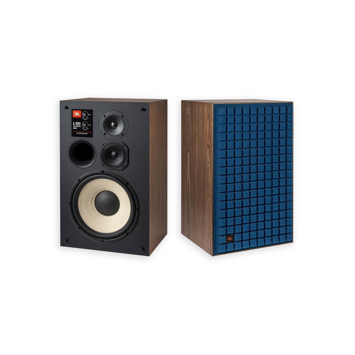 The JBL L100 Classic MkII is a 12-inch three-way standmount loudspeaker that blends iconic 1970s design with upgraded modern acoustic engineering. Featuring a pure pulp cone woofer with dual spider, polymer-coated midrange driver, titanium dome tweeter, bi-wire/bi-amp crossover network, and a walnut veneer cabinet with Quadrex foam grilles, it delivers powerful, room-filling sound with unmistakable JBL character. Ideal for medium-to-large rooms and for listeners who want a bold, dynamic, vintage-inspired speaker with true modern high-performance capability.