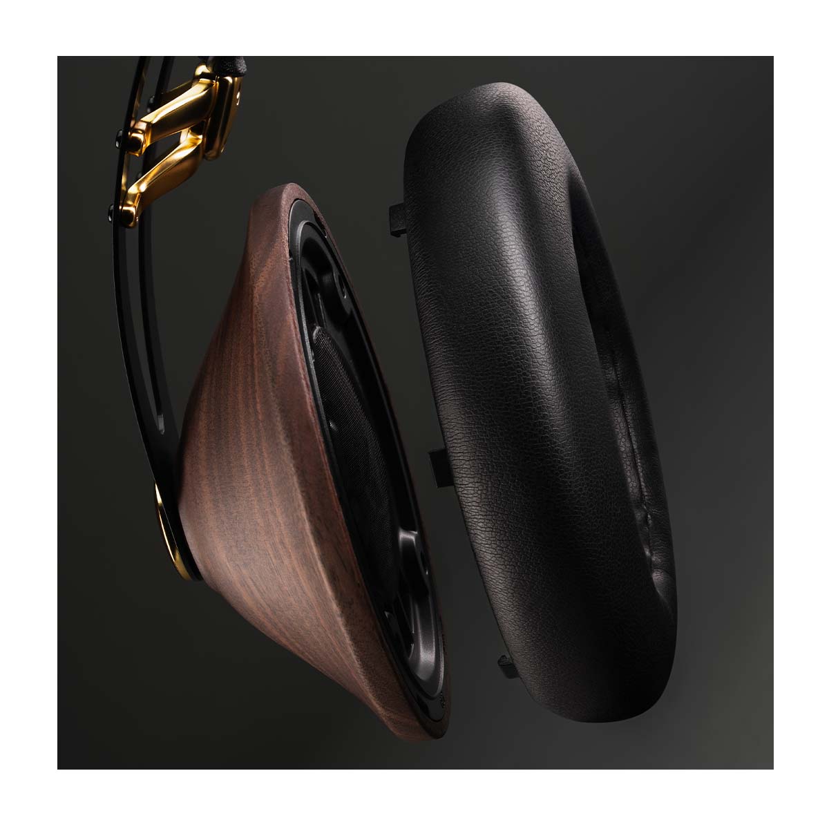 Walnut Wood Earcups – Hand-finished, CNC-machined natural walnut for warmth and acoustic stability.