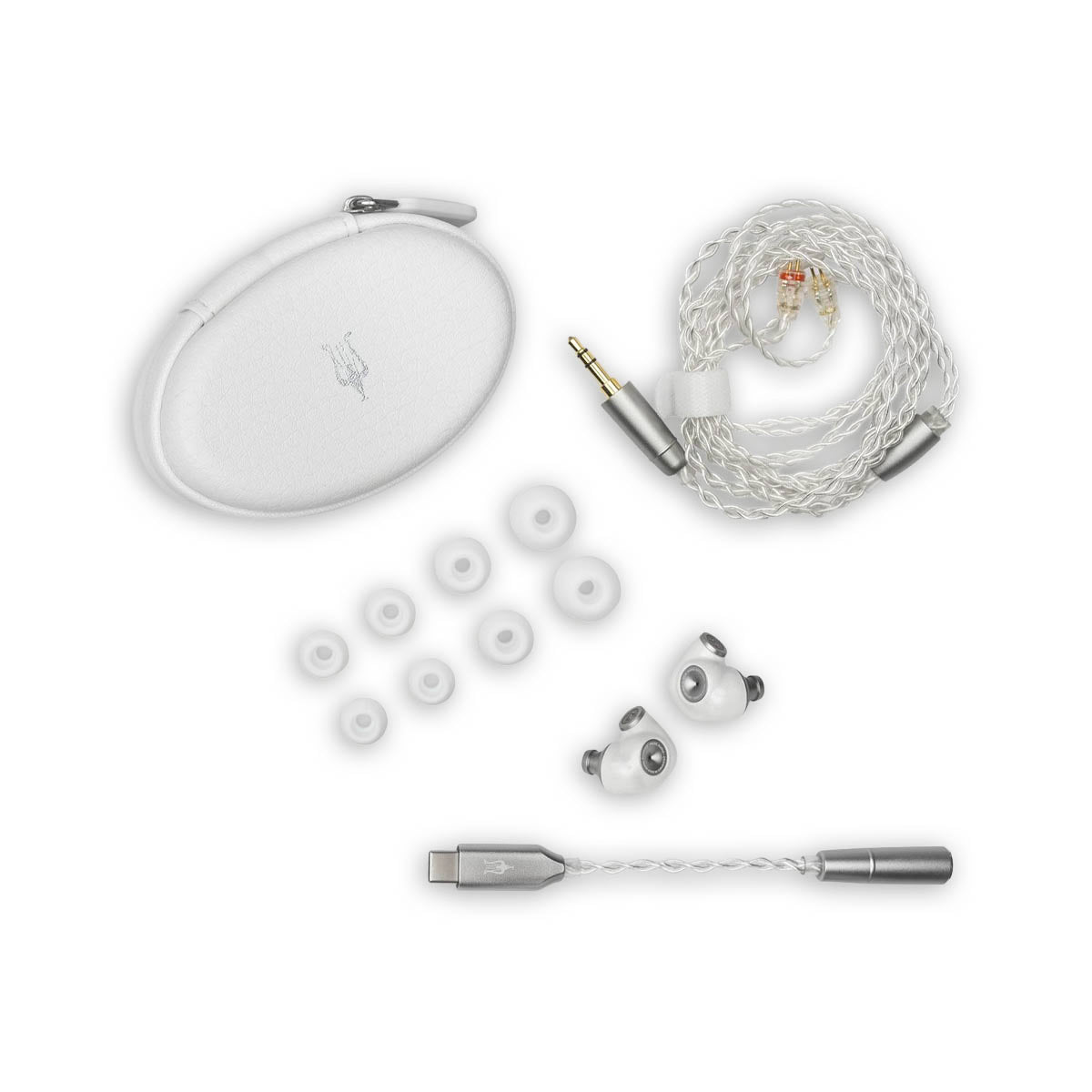 Four pairs of custom silicone ear tips create a secure, isolating seal that enhances both bass control and comfort.