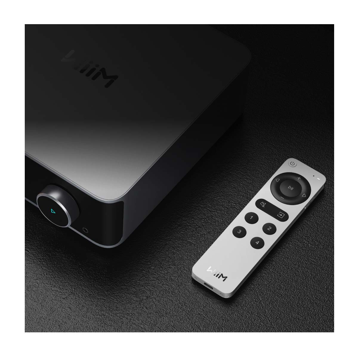 Premium aluminium smart remote designed for WiiM systems.
